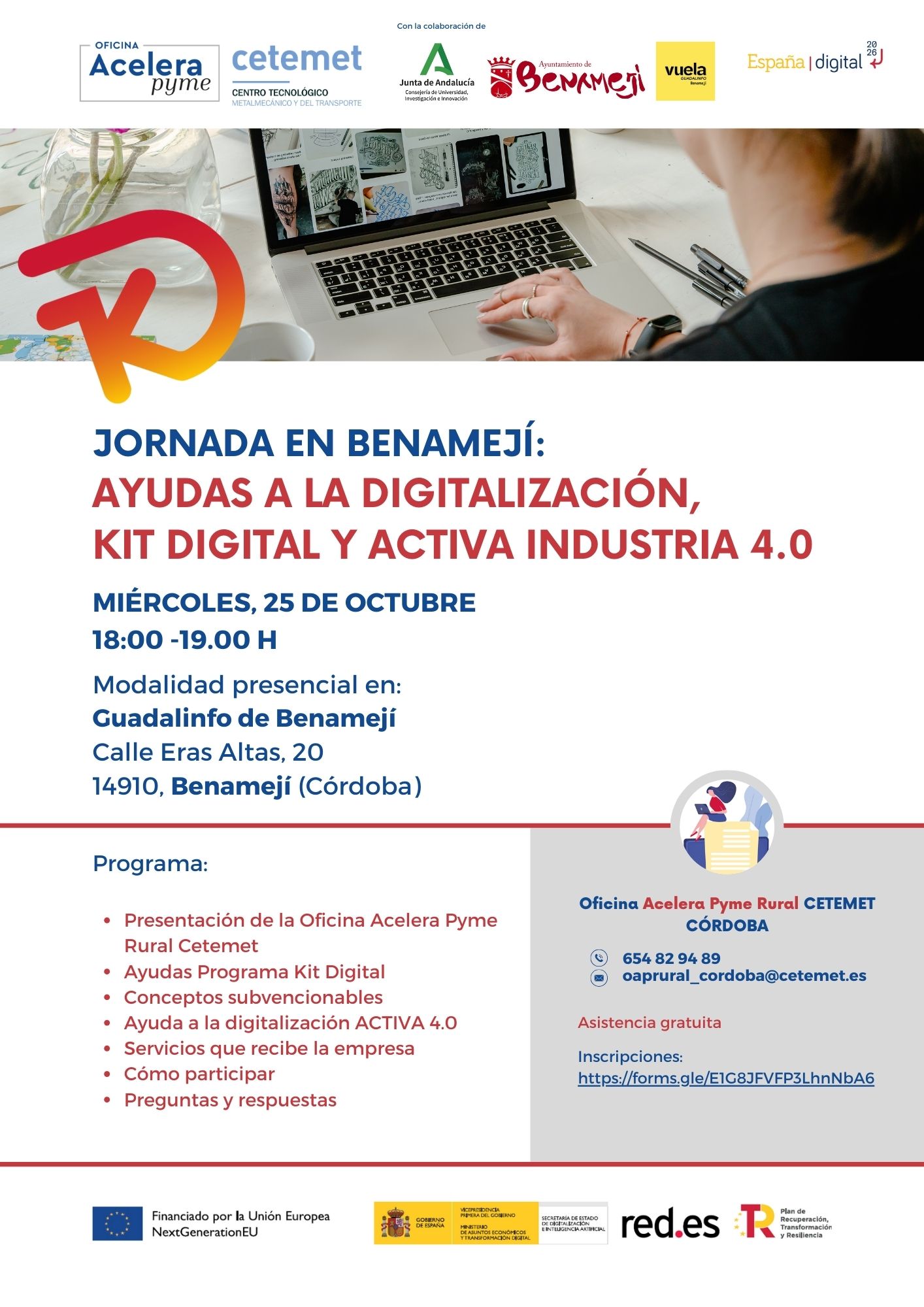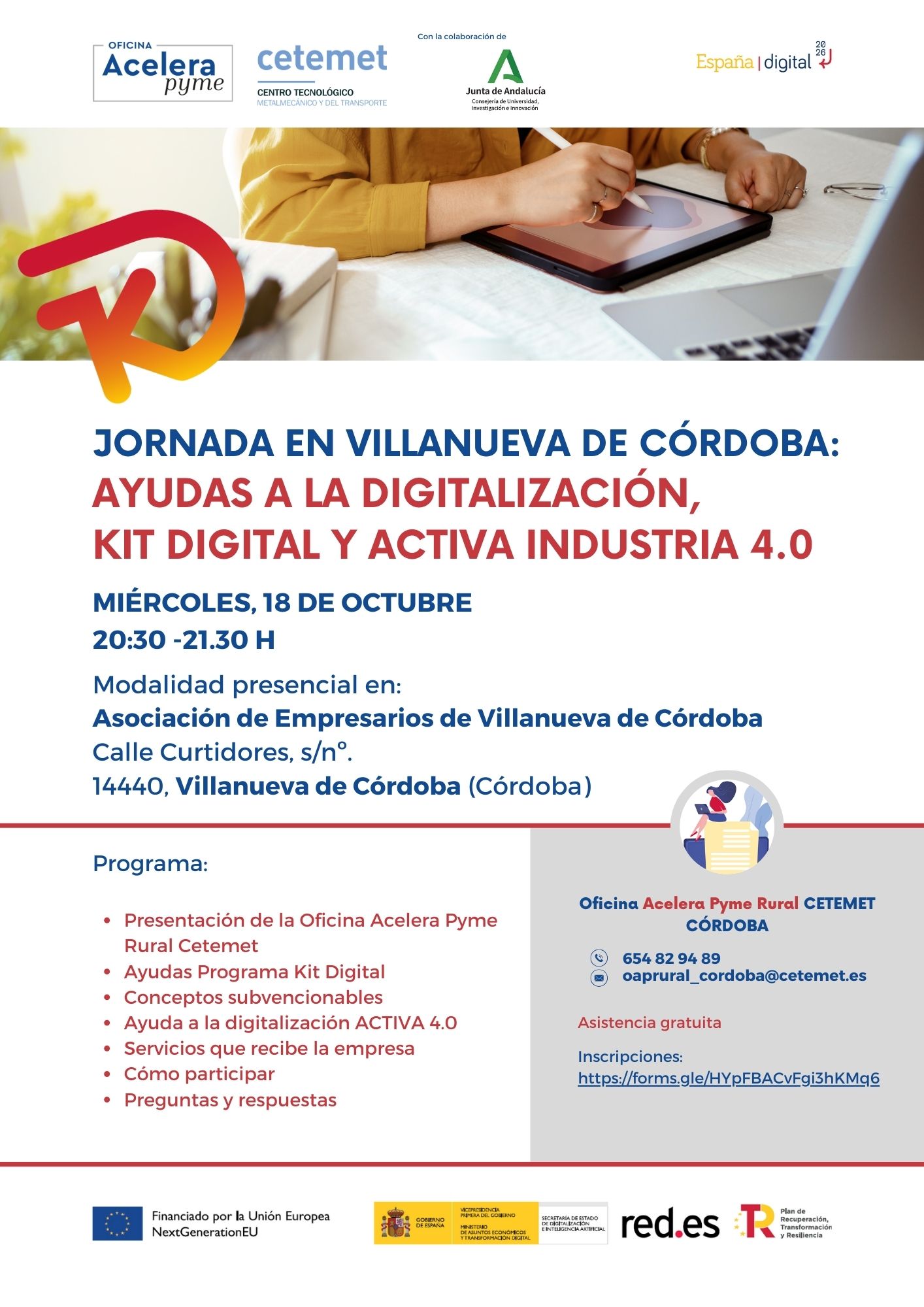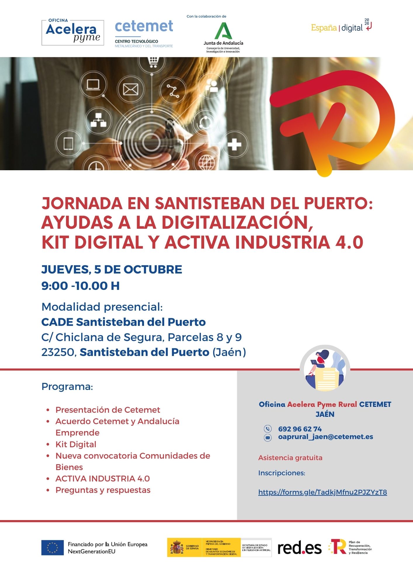 El pasado jueves 5 de octubre la Oficina Acelera pyme Rural Cetemet, celebró la jornada en Santisteban del Puerto (Jaén) sobre las ayudas a la digitalización Kit Digital y ActivaIndustria40. Organizado en colaboración con Andalucía […]