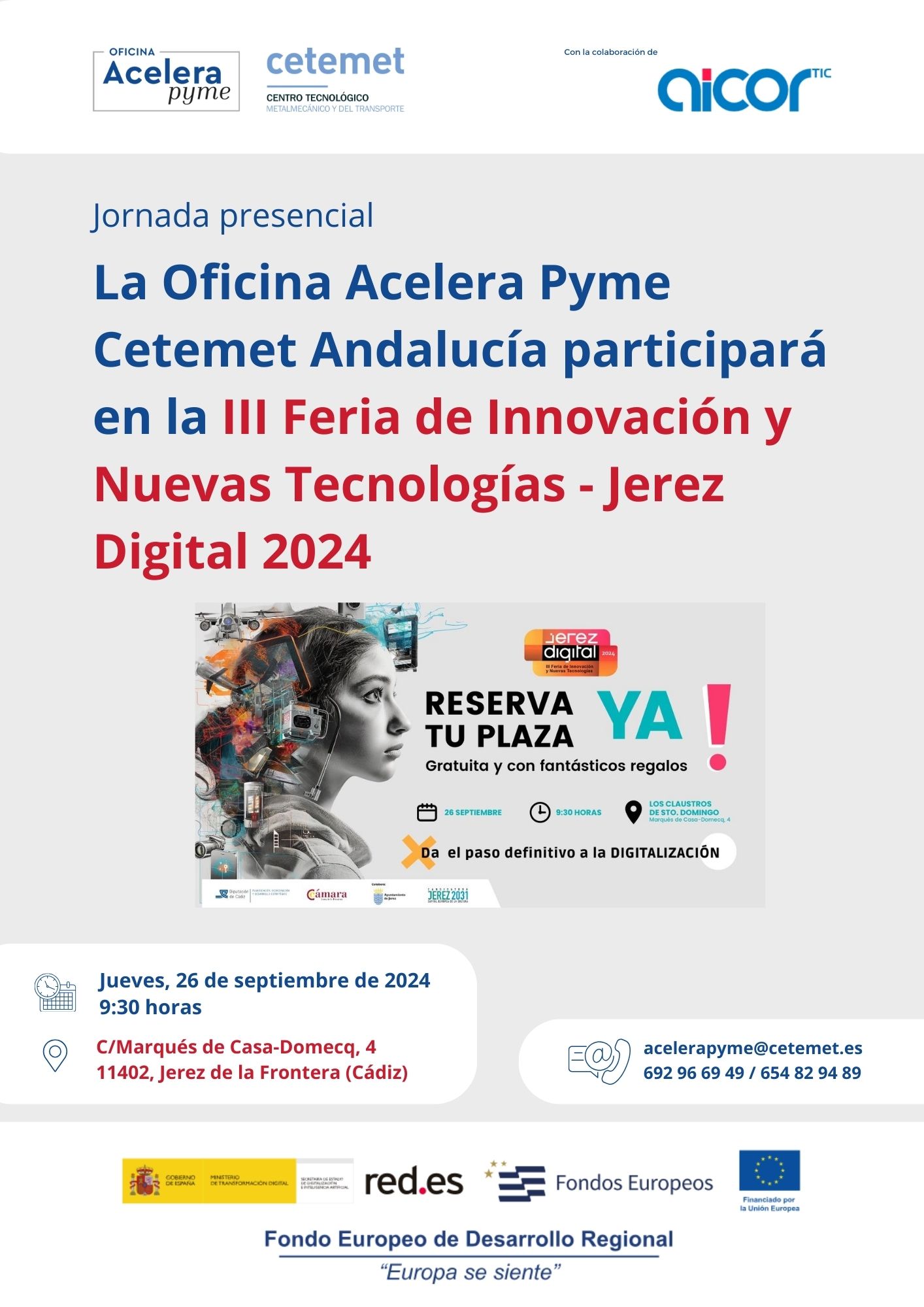 Nos complace anunciar que la Oficina Acelera Pyme Cetemet Andalucía estará presente en la III Feria de Innovación y Nuevas Tecnologías de Jerez Digital 2024, formando parte del expositor de […]