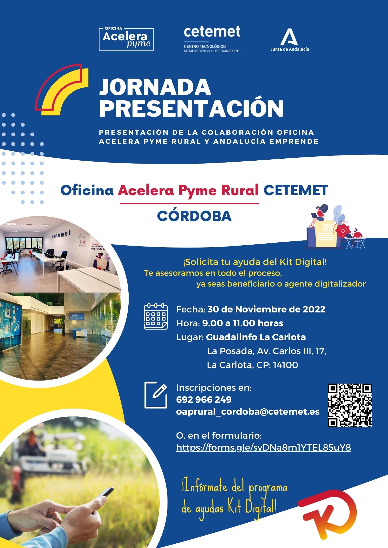 El próximo miércoles 30 de noviembre de 2022, en el municipio de La Carlota, se celebra una nueva Jornada de Presentación de la Oficina Acelera Pyme Rural CETEMET-Córdoba en colaboración […]